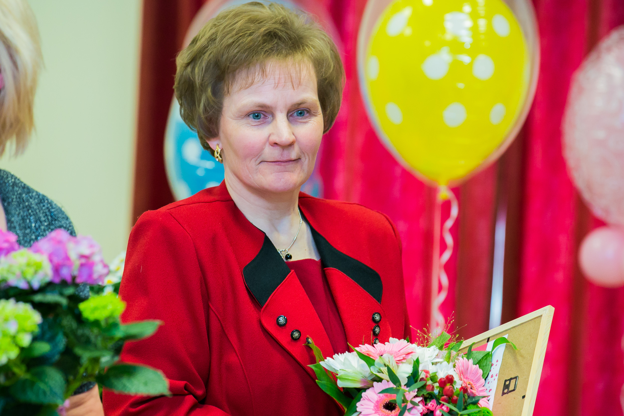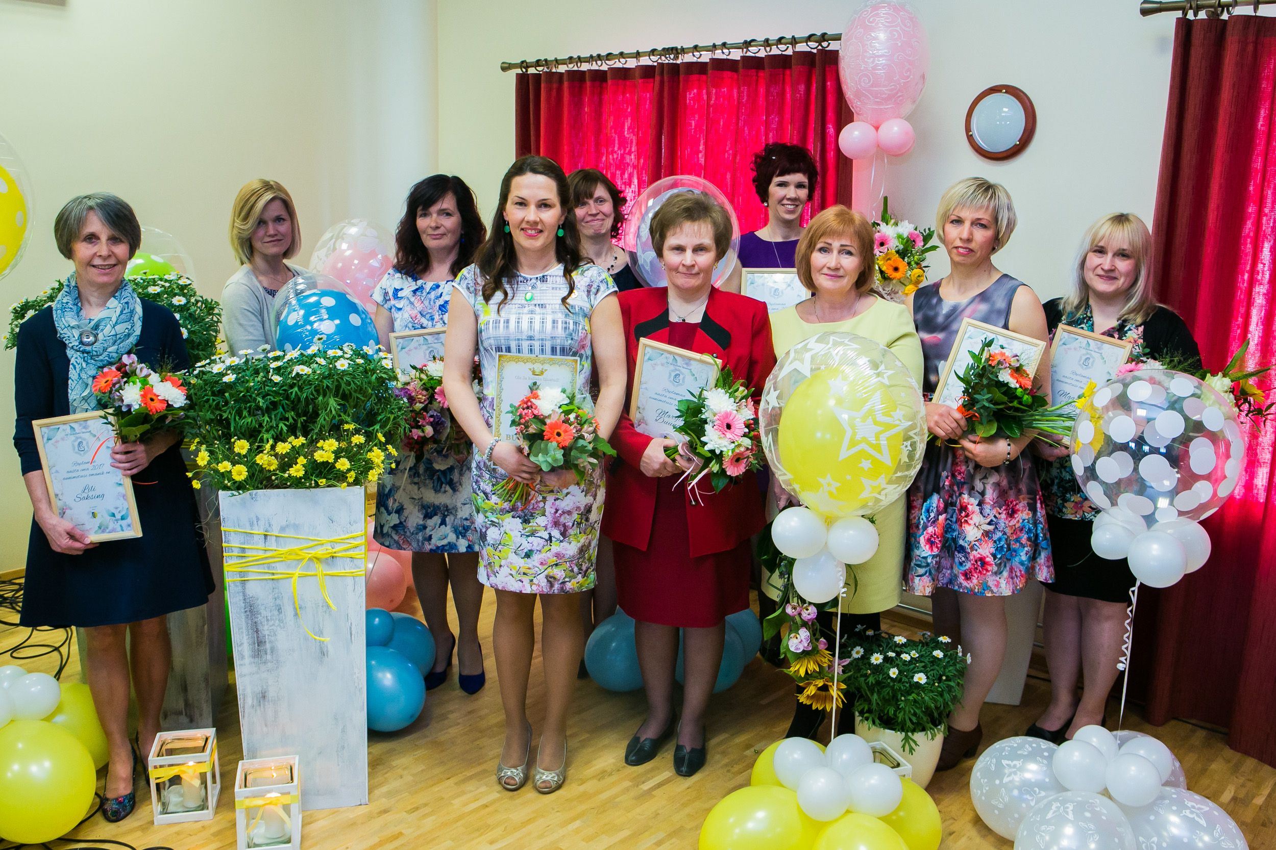 Käru pritsumaja õhupallide ja lilledega ehitud saali sisenejaid ootas juba fotograaf, et suurte küünalde ja küünlajalgadega dekoreeritud nurgas teha igast perest mälestuseks ühispilt.
