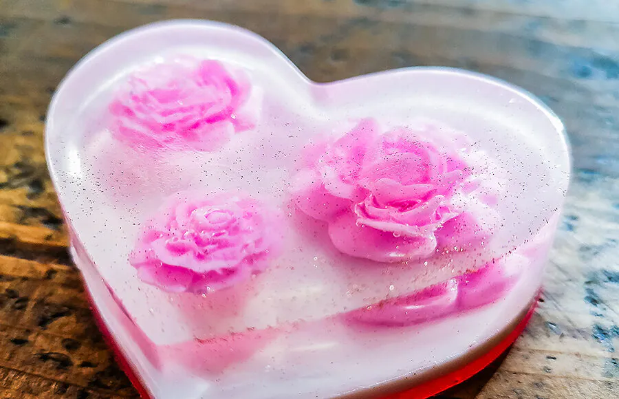Teine liik seepe, mida Katrin teeb, on seep seebis, ehk esmalt teeb ta väiksemates vormides valmis kujukesed, mida ta siis seebimassi sisse uputab, nii et tekib nii-öelda 3-D seep.