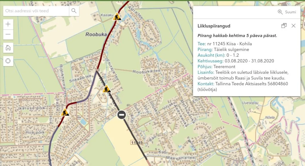 3.–31. august 2020 sulgevad rekonstrueerimistööd liiklusele Kiisa–Kohila tee km 0–1,2.