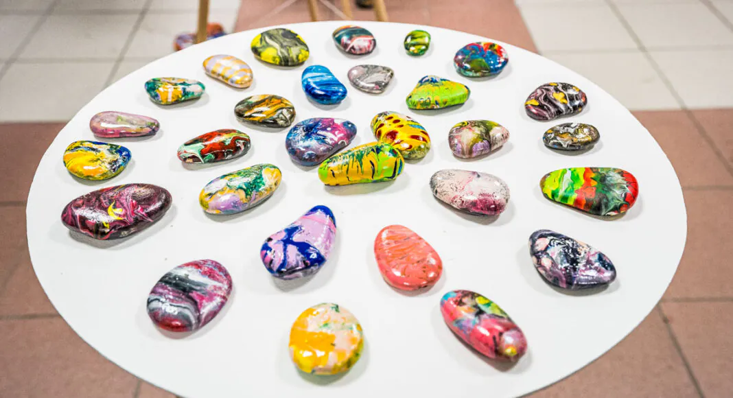 Galerii seintel rippuvate joonistuste autor on noor kunstnik Noora Tilk. Kõikjal galerii põrandal ja alustel olevate maalitud kivide autor on Eve Pukk.