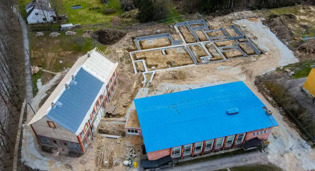 See võiks olla üpris tavapärane vaatepilt ühest etapist Kaiu hariduskeskuse valmimise teekonnal. Ainult et ehitajaid platsil enam ei liigu.