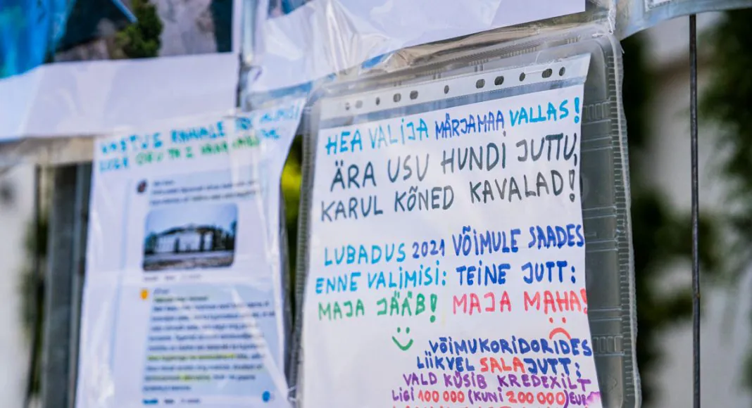 Märjamaa päevade ajal kinnitas seltskond mõttekaaslasi 6. augustil hoonet ümbritseva aia külge kiletaskutes droonifotod, arhiivimaterjali ja tekstid.