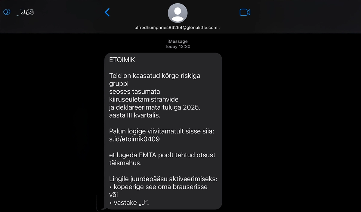 Registrite ja Infosüsteemide Keskusele (RIK) on jõudnud mitmeid teateid e-toimiku nimel levivatest SMS-sõnumitest ja telefonikõnedest, mis viitavad liiklusrikkumisele.