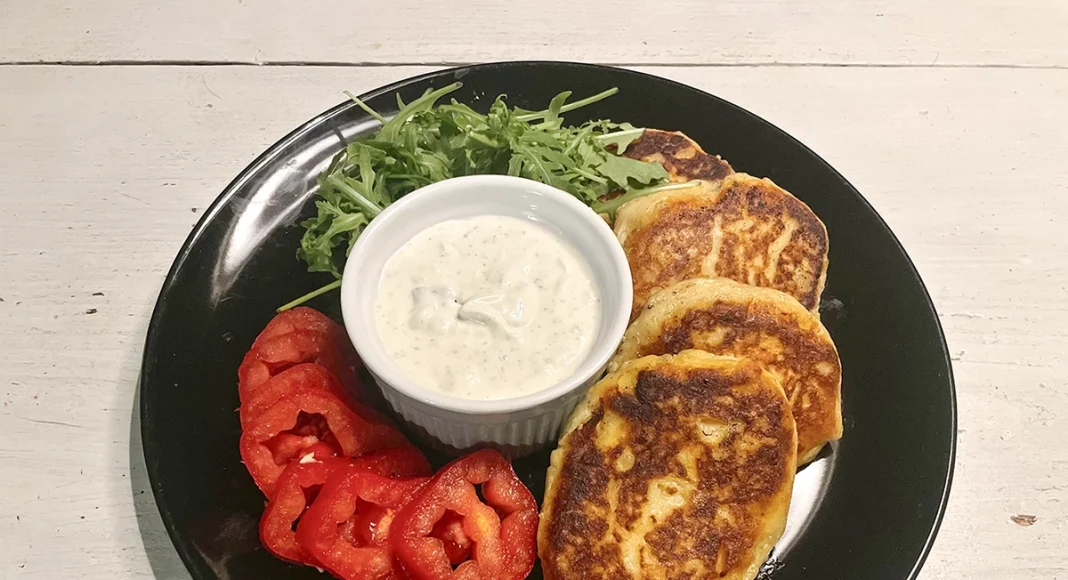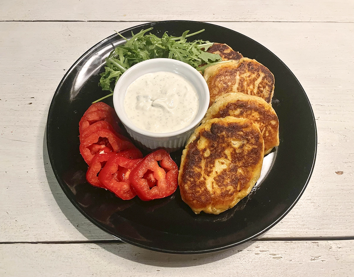 Vaja lรคheb: 1 kg kartuleid, 1 muna, 1/2 klaasi jahu, 1-2 supilusikat vรตid (originaalretseptis kirjas taimevรตi Priima). Kastme jaoks hapukoor, kรผรผslauk ning roheline sibul. Kaunistamiseks tomativiilud ja rukola.