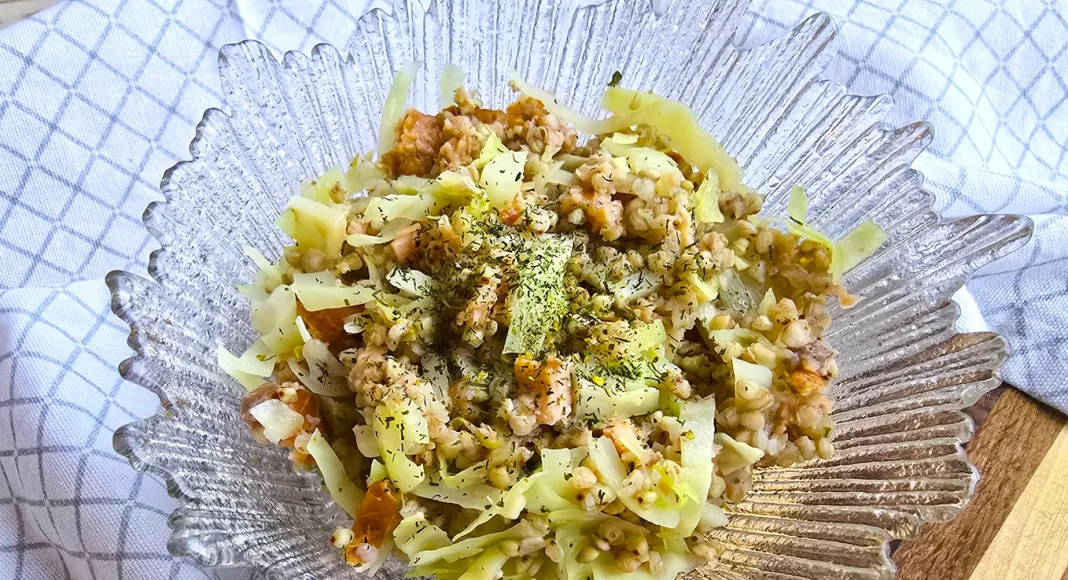 Vaja läheb: 2 dl vett, 1 dl toortatart, 1 küüslauguküüs, veerand väikest kapsapead, 250 g suitsulõhet, 2 sl õli ja 1 sl võid, natuke hakitud tilli, soola, pipart.