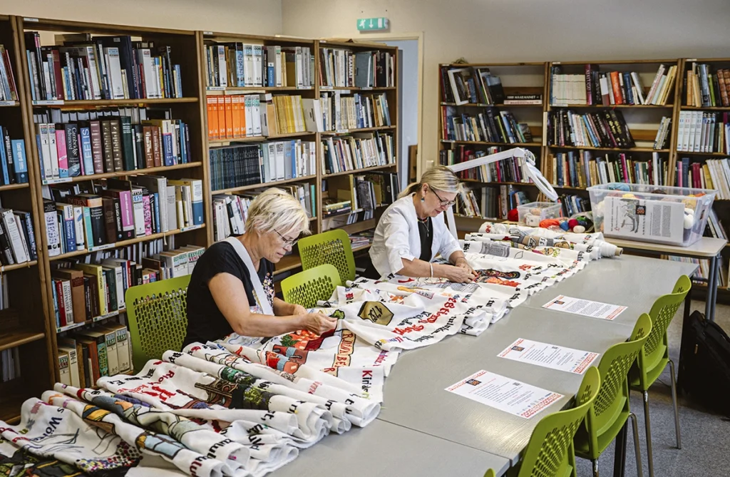 Suvel jรตudis Raplamaa raamatukogudesse eesti raamatu aastale pรผhendatud piltvaip, mille tikkimises said osaleda kรตik soovijad.